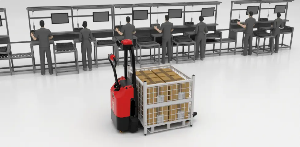 Het is een Slimme Elektrische Transpallet die automatisch pallets van punt A naar punt B transporteert – eenvoudig, efficiënt en volledig zelf in te stellen.