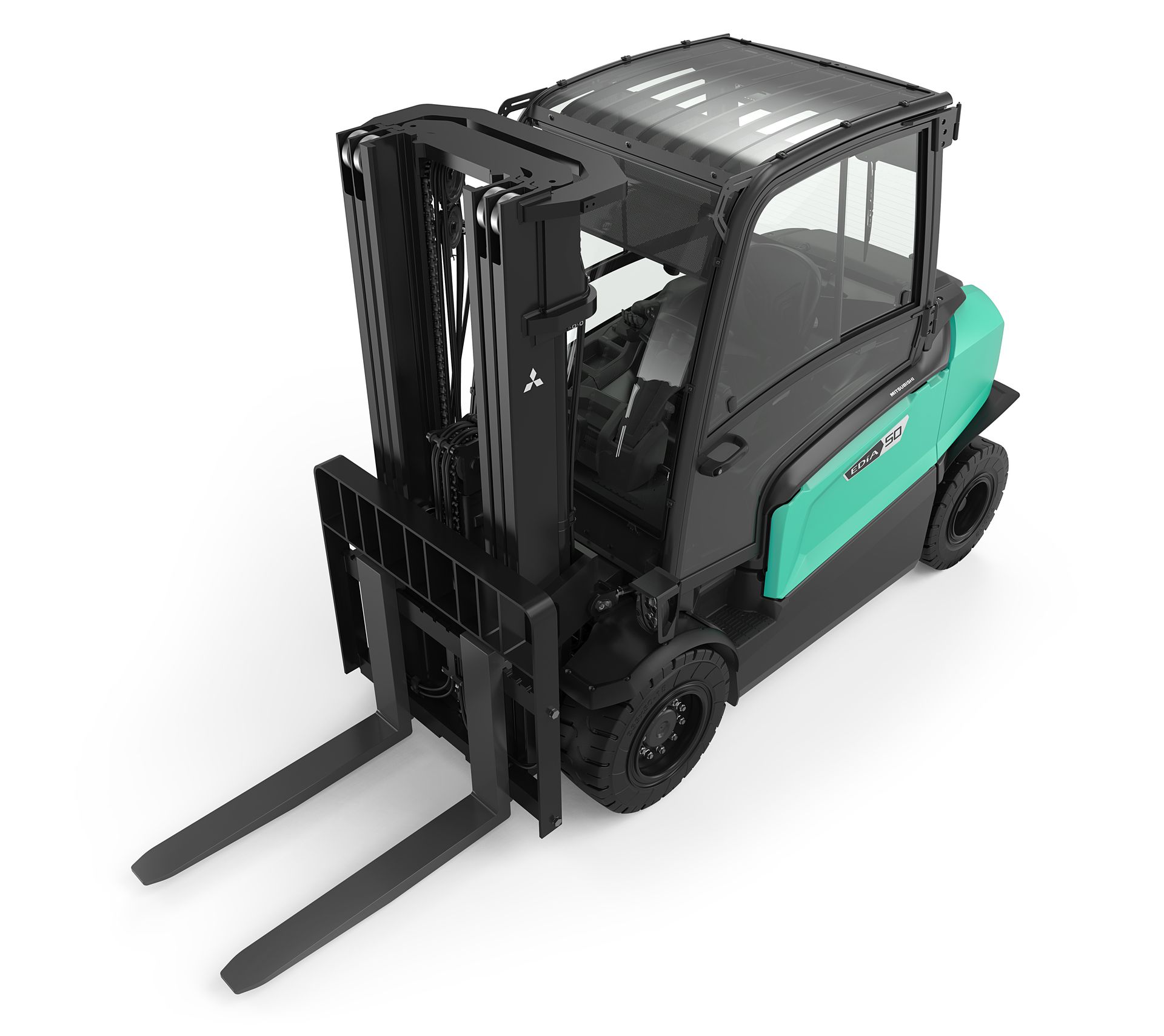 Een geoptimaliseerd mast-, wiel-, dashboard- en contragewichtontwerp maximaliseert het zicht op de lading, de vorken en de voor- en achterwielen.