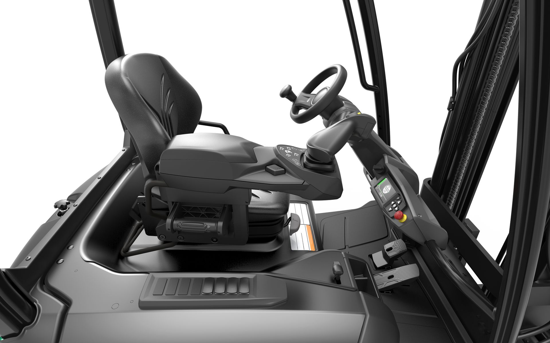 Het is bekend dat een comfortabele bestuurder productiever zal zijn. EDiA XL beschikt over een met rubber afgedichte cabine die microvibraties minimaliseert, en de Low Noise Lift is met slechts 63 dB de stilste op de markt. EDiA XL biedt ook opties voor airconditioning en verwarming, zodat de temperatuur kan worden aangepast aan de wensen van de bestuurder. Deze functies zorgen samen voor een stressvrije omgeving waarin de bestuurder zich kan concentreren op de taak die voorhanden is.